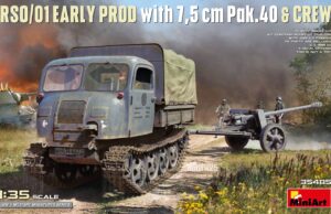 Miniart models (UKR) presenta una nueva iteración del RSO/01 de producción temprana, con un PäK 40 tractado más operadores, en escala 1/35, el kit...