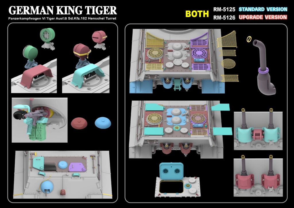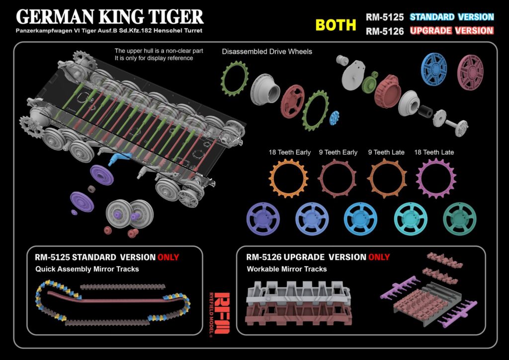 RYE FIELD Models nos anuncia este nuevo ramillete dedicado al King Tger o Konig Tiger o Panzer VI Tiger ausf B en escala 1/35, para todos los gustos. Viendo el detalle que publica el fabricante, estos modelos van a otro nivel, por sus componentes como por los detalles funcionales que exhiben. Cuando pensábamos que un modelo súper popular entre las marcas, ya no tenía opciones de innovar, aparece esto, miren: