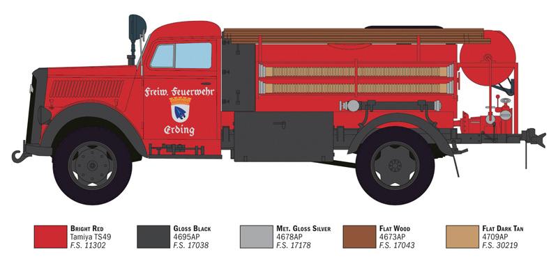 Italeri (ITA) retoma el buen camino al parecer, ahora edita este camión de bomberos, en escala 1/24, empleando como base el Opel Blitz. El kit incluye ruedas de goma y todo el equipamiento de bomberos.