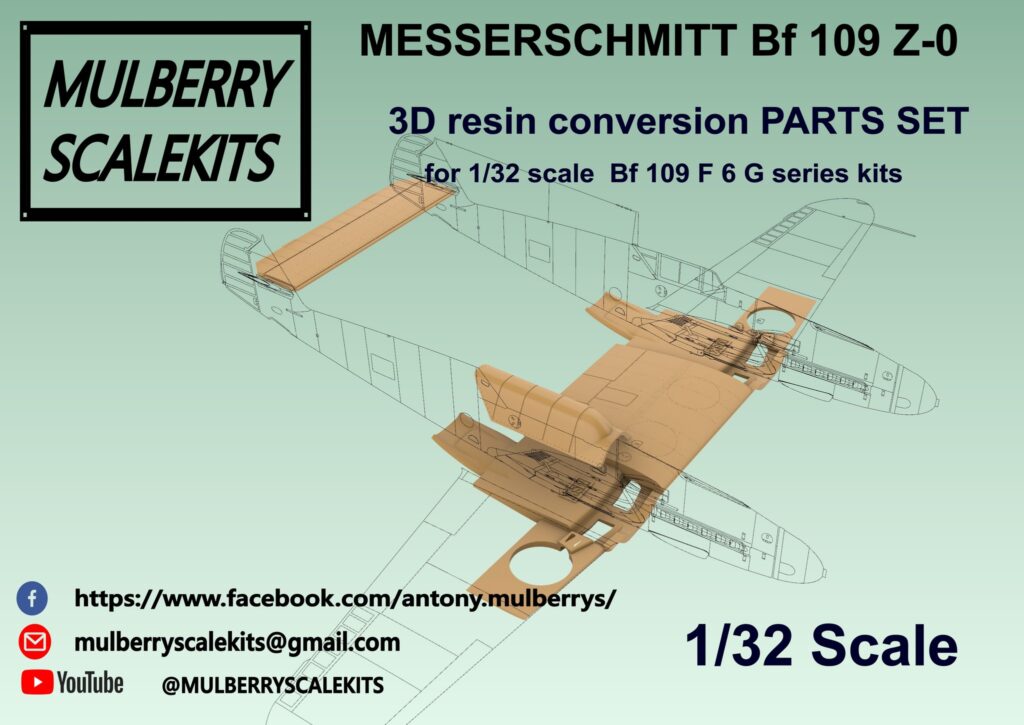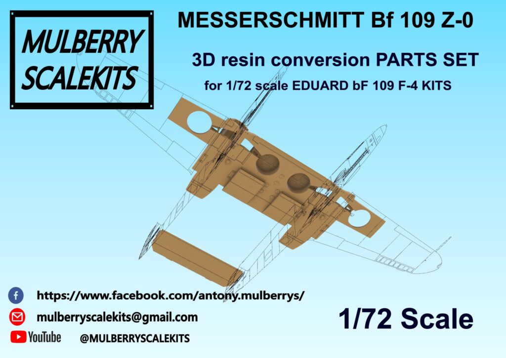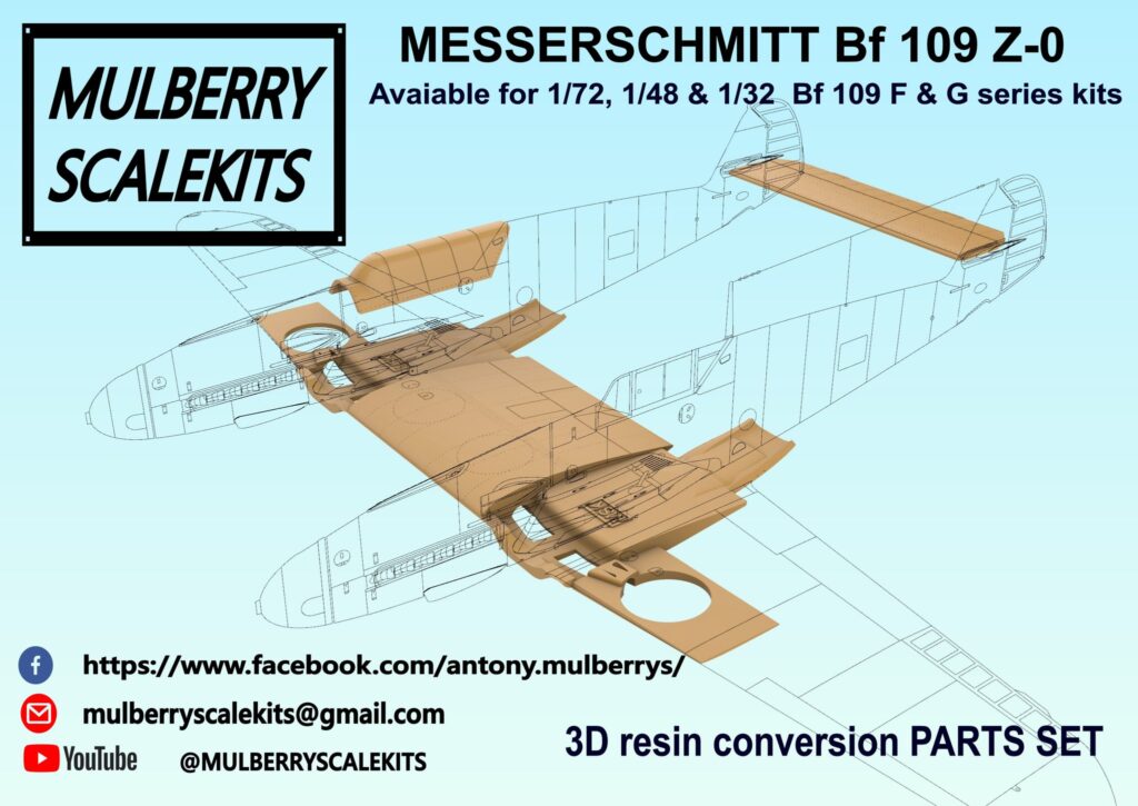 Mulberry scale kits presenta su set de conversión para lograr un Me-109, es decir 2 Me-109 unidos, disponible para escalas 1/72, 1/48 y 1/32.