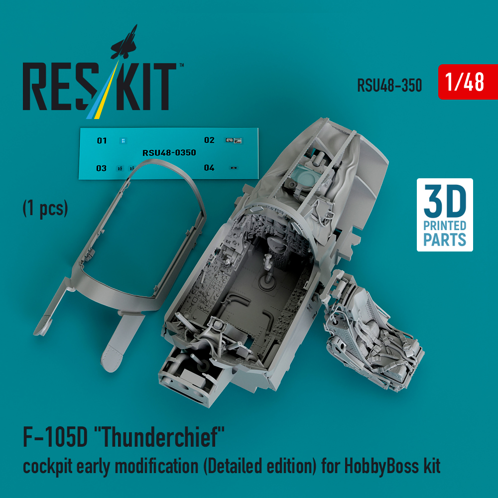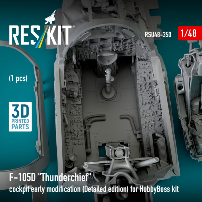 La marca ResKit (UKR) presenta su aftermarket en resina, impresión 3D, con la cabina completa para un F-105D de la marca Hobbyboss (CN). Para los entusiastas que trabajan en el Hobbyboss 1/48 F-105D «Thunderchief», le traemos kits de cabina expertamente elaborados para mejorar sus construcciones: