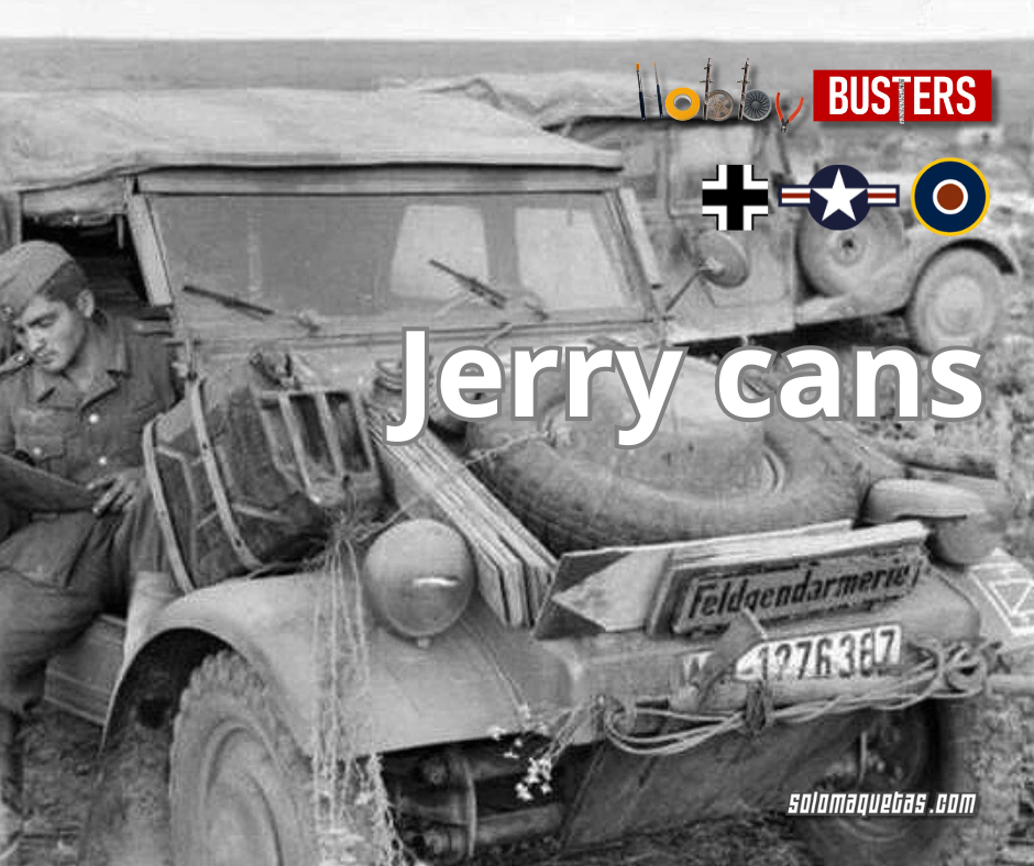 Los ingleses pintaban los jerry cans para agua, para su identificación, con blanco debajo de las asas y las zonas de bajo relieve de los laterales
