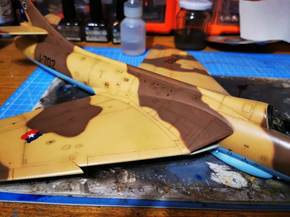 Primero pinto los contornos de las manchas y después las relleno. No pretendo que el color quede parejo, no es necesario en mi humilde opinión ya que si ves la pintura en un avión real nunca es pareja.