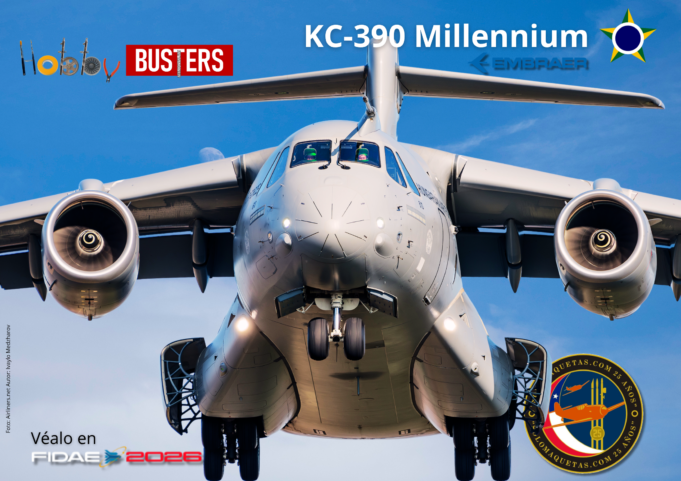 El Embraer (BR) KC-390 Millennium es un avión de transporte táctico multi-misión de nueva generación, capaz de transportar hasta 26 toneladas de carga, operar desde pistas no preparadas y realizar misiones como carga, evacuación médica, reabastecimiento en vuelo y ayuda humanitaria.