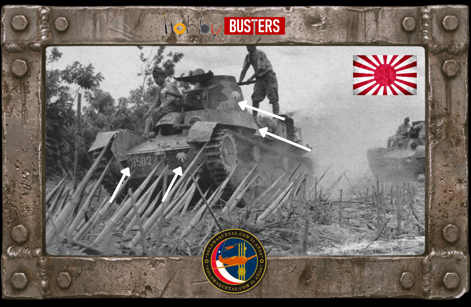Fotografías de Type 95 Ha-Go y Type 97 Chi-Ha en China y el Pacífico muestran caracteres grandes en torre.