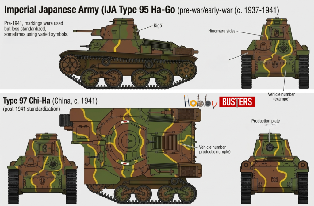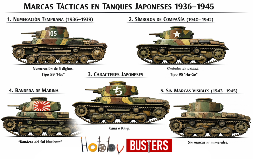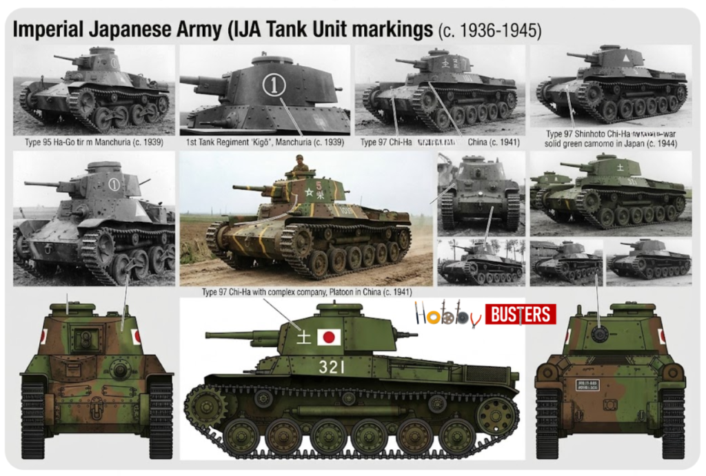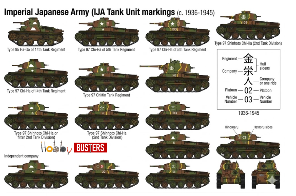 A diferencia de Alemania (vea nuestro artículo aquí) o Reino Unido (vea nuestro artículo aquí), el Ejército Imperial Japonés (IJA) no desarrolló una doctrina de guerra acorazada independiente, razones varias que no son materia de este artículo, empleó tanques principalmente como apoyo a la infantería en China y el Sudeste Asiático incluyendo islas, principalmente blindados resistentes a armas livianas, con escaso blindaje, operó en entornos donde la identificación visual compleja era menos prioritaria. De manera más didáctica podemos afirmar que las marcas tácticas en tanques japoneses de la Segunda Guerra Mundial son más bien casos esporádicos, poco frecuentes, pero los hay.