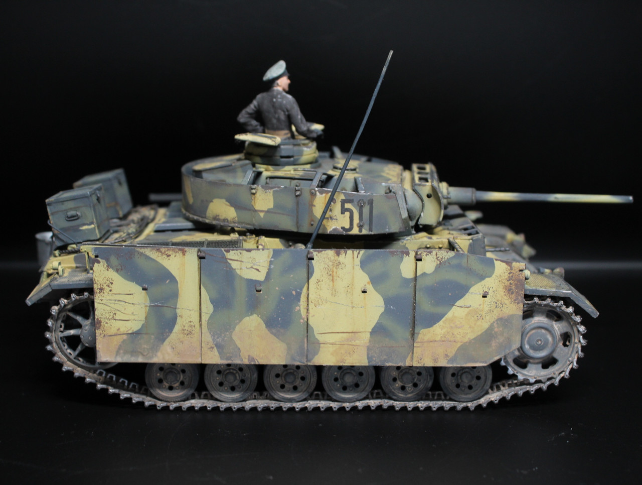 Viendo unos pdf’s me encontre con un esquema que me llamo la atención, asi que me hice de la maqueta academy y aqui se las muestro, solo las cadenas no corresponden asi que le puse las que corresponden, la baranda estan hechas con alambra y las cajas son de resina.Tambien me quise aventurar con una figura y creo que quedo bastante decente…ya ire mejorando pero ya di el primer paso, por cierto la figura es tamiya.