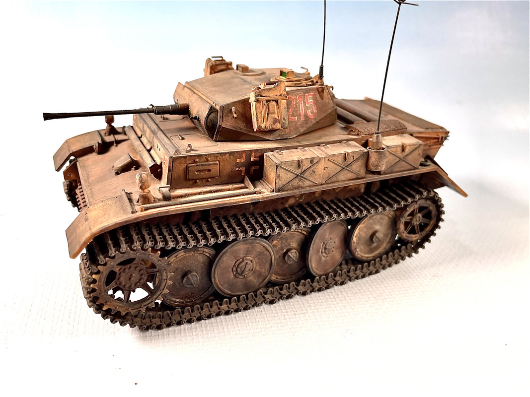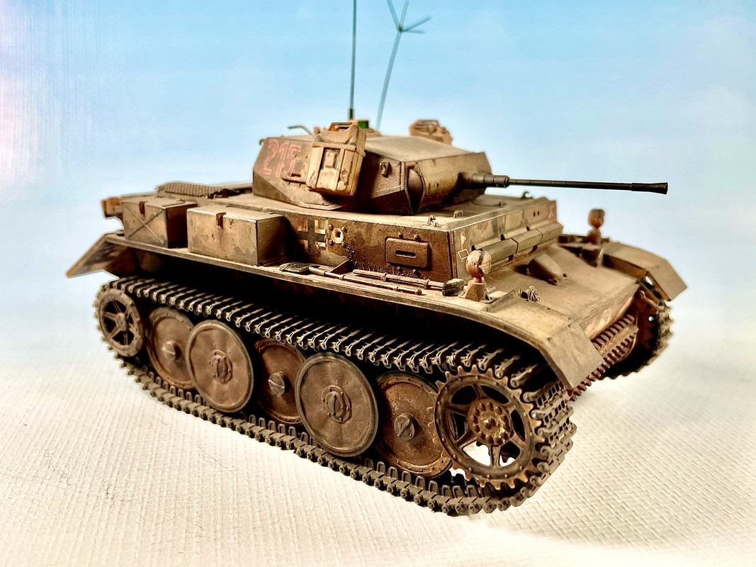 Entre los planes estuvo equiparlo con una pieza de 50 mm, tuvo una fugaz presencia en el frente pero sin duda el diseño es muy agraciado. De alguna forma jugó en contra su alto costo de fabricación, que rivalizada con el Panther proporcionalmente y además quién lo fabricaba era la misma MAN que producía el Panther. Este fue el único carro ligero que usaba ruedas intercaladas y el sistema de oruga floja, una belleza de cualquier forma, para mí.PS: como se aprecia, hay un soporte de rueda quebrado, no me dí cuenta de ese detalle, lo lamento